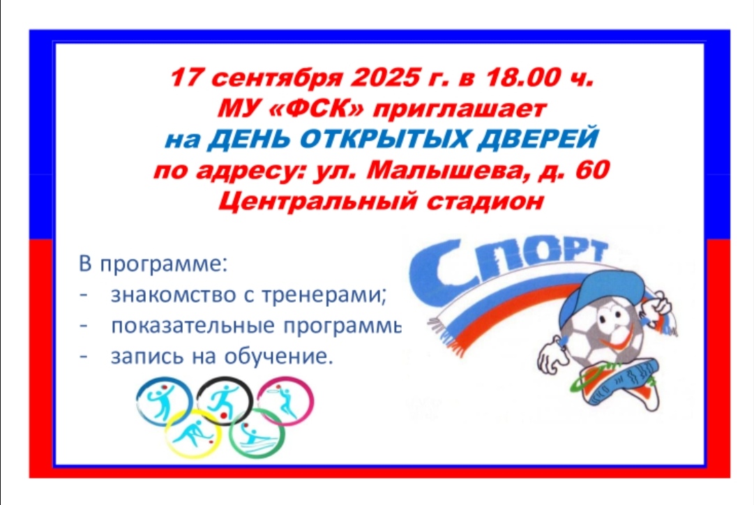 Муниципальное учреждение «Физкультурно-спортивный комплекс» совместно с Центром тестирования Всероссийского физкультурно-спортивного комплекса ГТО г. Кыштыма приглашает 17 сентября 2025 г. в 18.00 ч. на ДЕНЬ ОТКРЫТЫХ ДВЕРЕЙ!