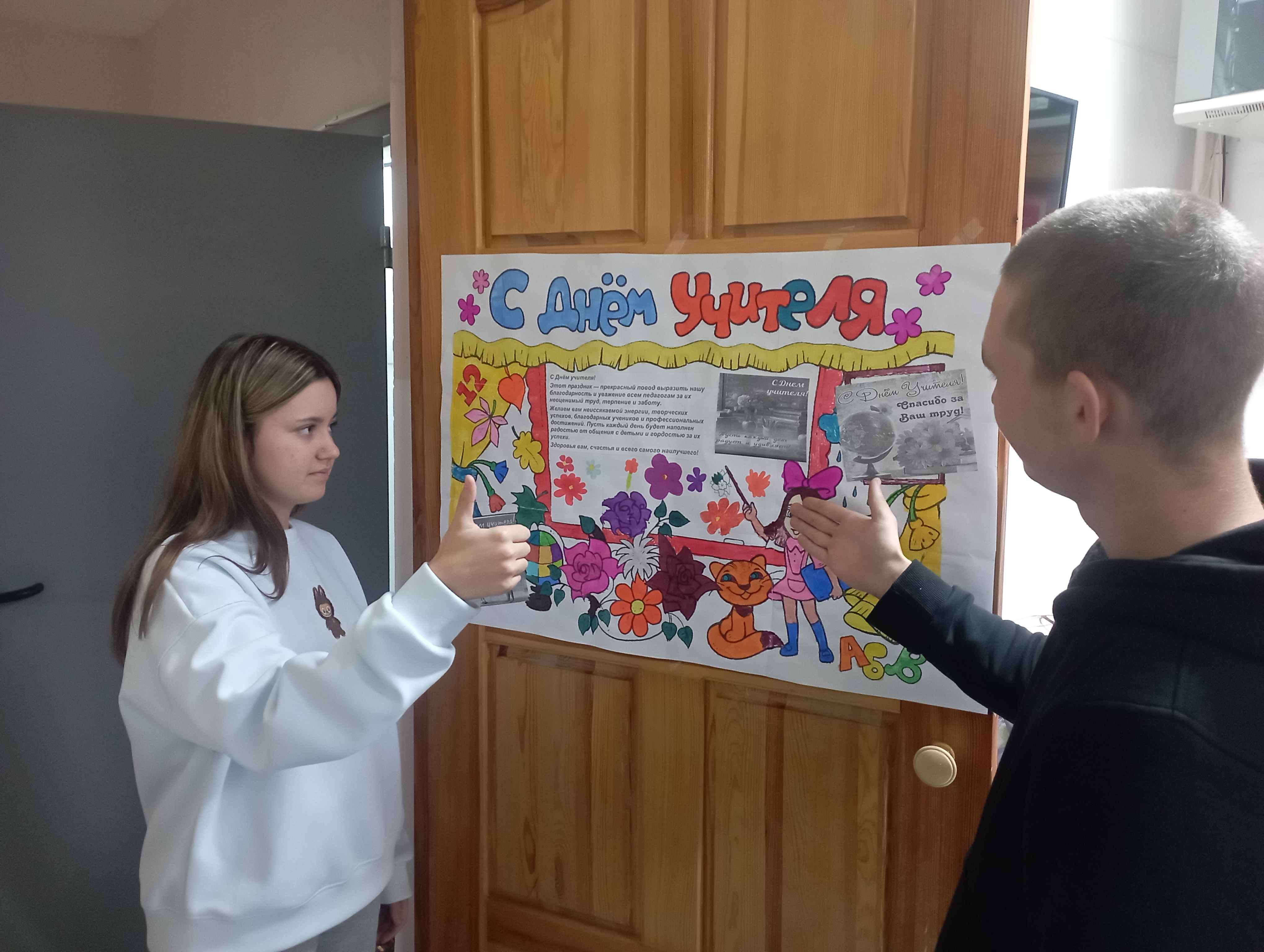 Накануне Дня Учителя учащиеся изготовили стенгазету, посвященную родным учителям. День Учителя –прекрасный повод поблагодарить тех, кто выбрал профессию важную и сложную. Учащиеся школы не отступают от добрых традиций прошлого. Подарки принято делать своими руками, вкладывая в него свою душу и настроение. Праздничная газета включает в себя поздравления, добрые пожелания и юмористическую рубрику. Очень приятно в свой профессиональный праздник получить оценку нелегкого труда через добрые слова и пожелания!